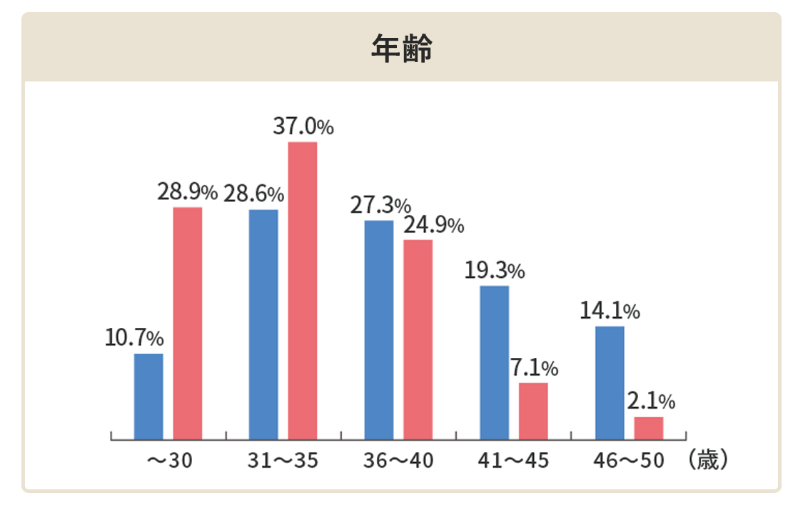 男性の約66%が20~30代!女性の約90%が20代~30代!